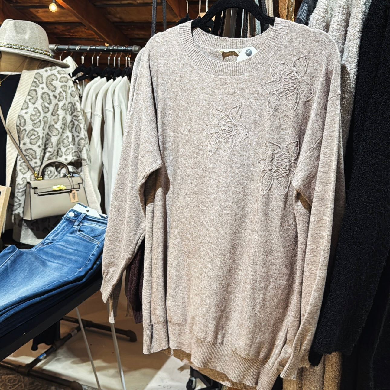 Lightweight, soft crystal detailed sweater on front, back, and sleeves.
