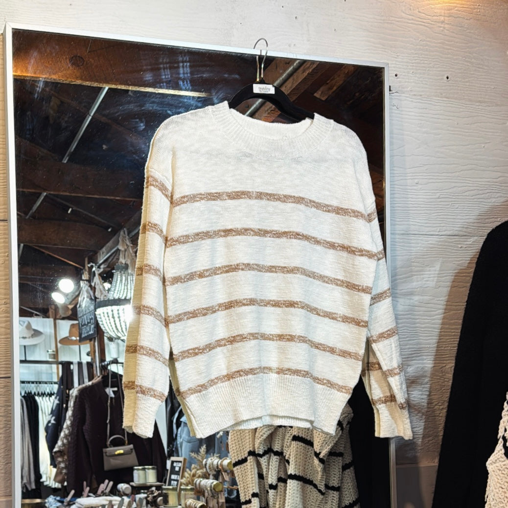 Lightweight, crochet striped Vneck sweater.