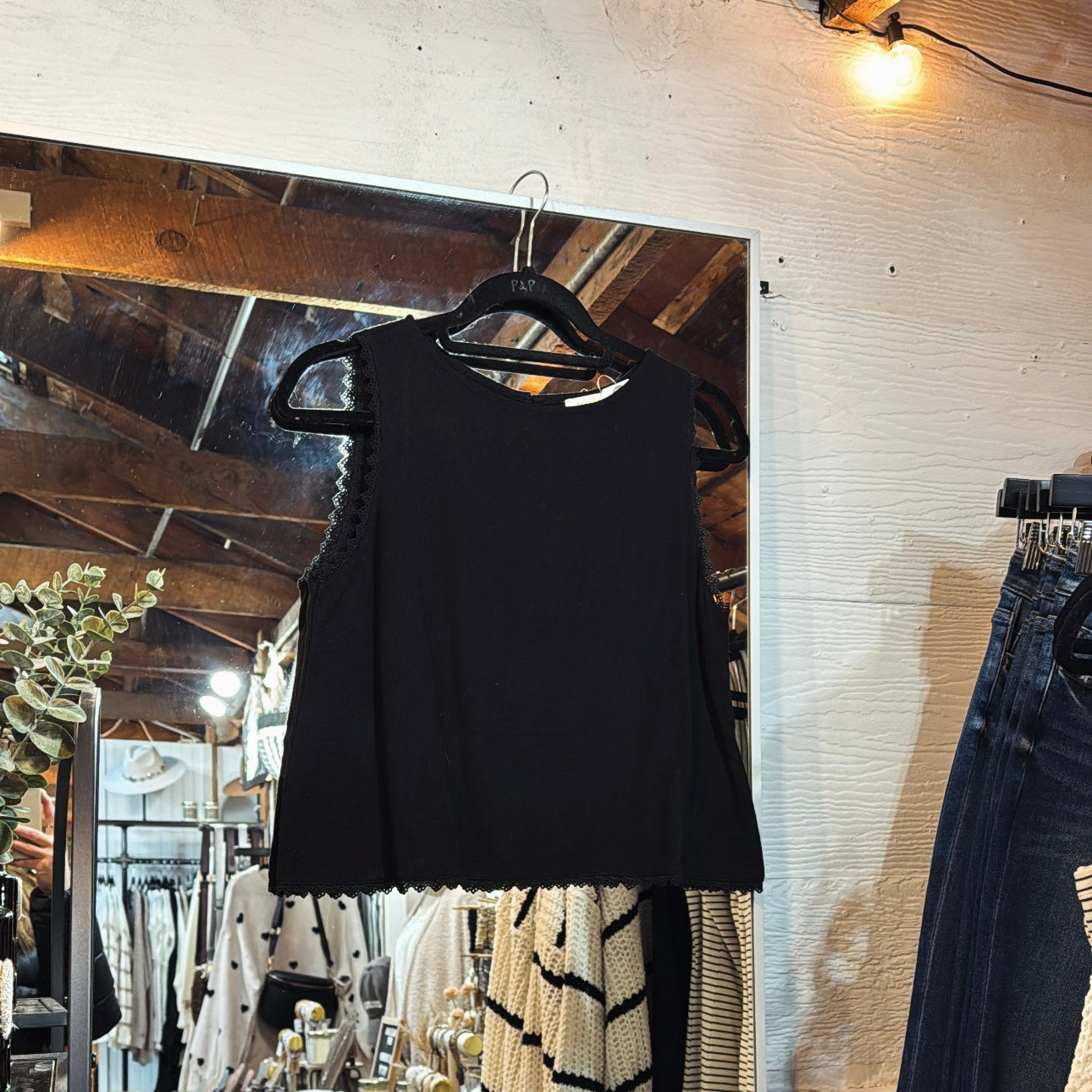 Luxe, lace jacquard blouse with cami lining.