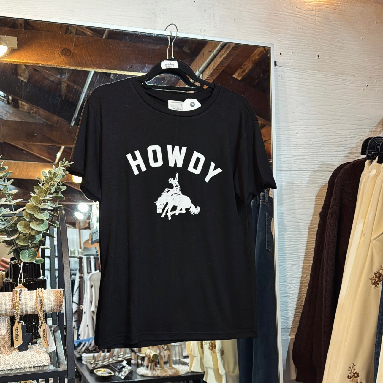 Luxe, lightweight t-shirt with Howdy on front. Cuffed sleeve.